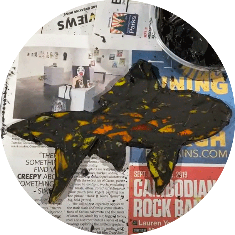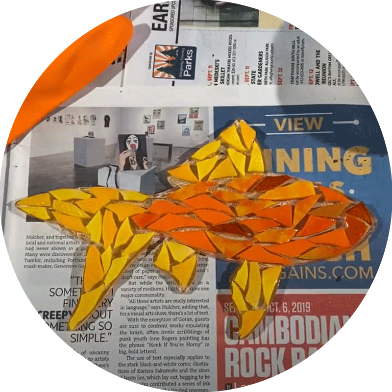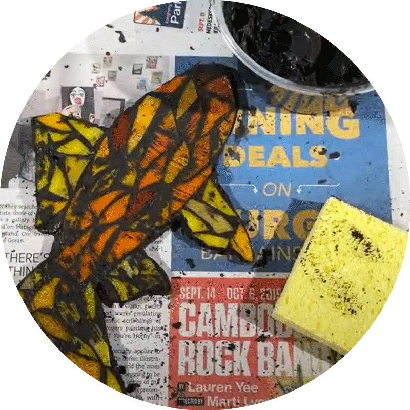 Apply some glue to the wooden backing and attach the glass pieces according to the patterned grain on the backing.